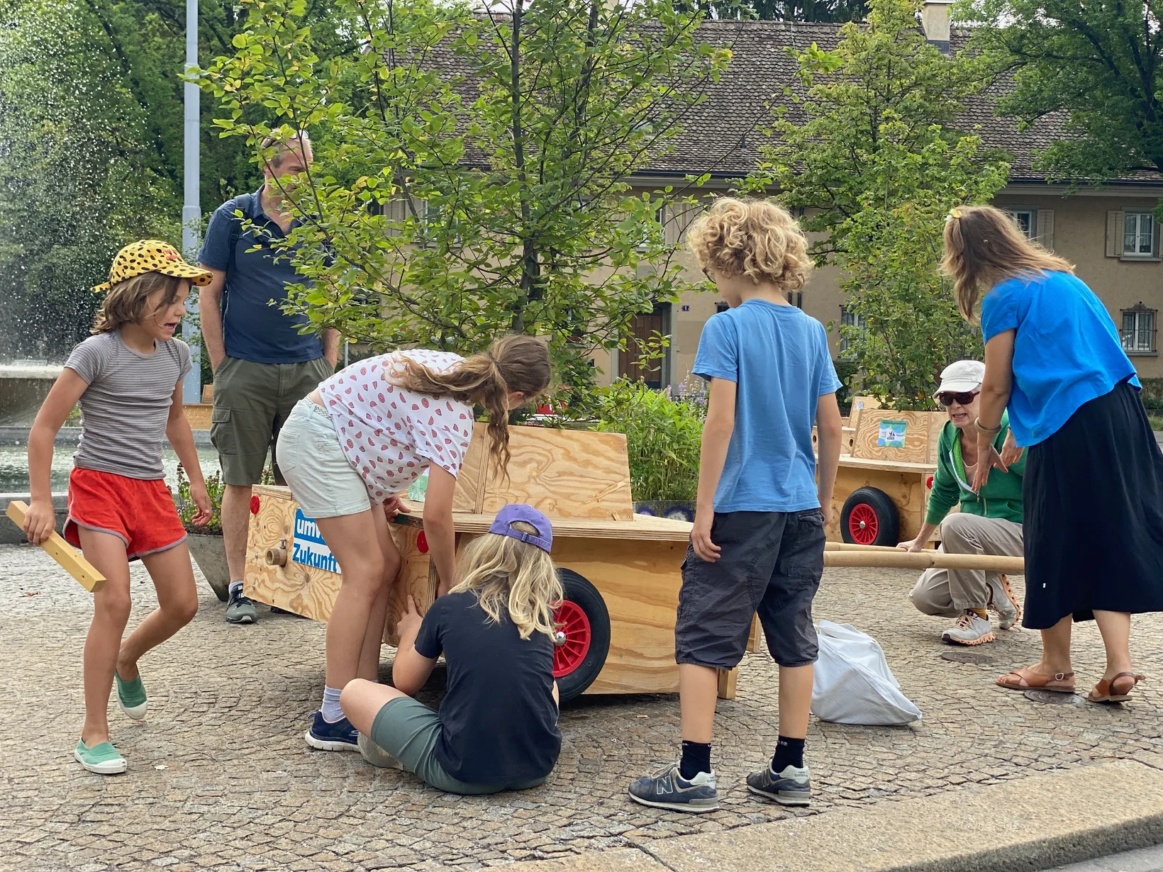 So eine Wanderbaumallee wächst aber nicht von alleine. Sie braucht viele zupackende Hände, die Wagen bauen und bepflanzen, die Bäume wandern lassen und die Bäume giessen und pflegen. Gratis geht es leider auch nicht.
