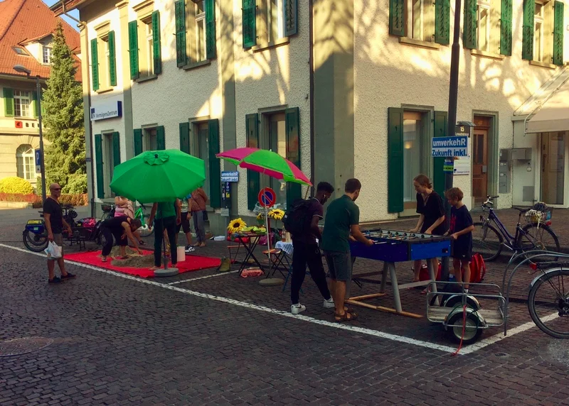 Ferien statt Parkplätze, die Parklücke zu einem Ferienparadies umbauen vom VCS-Uri. Weitere Infos