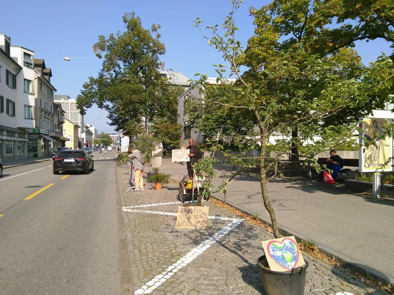 Bäume statt Parkplätze  mit Rémy von der Klimagruppe Uster am PARK(ing) Day 2020 in Uster