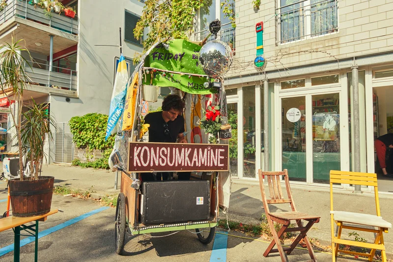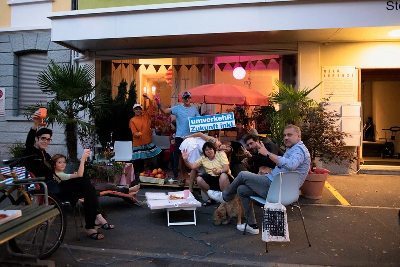 Oktober(fest) Revolution im Chreis Cheib, diskutiere am temporären Stammtisch an der Bäcki über die Zukunft des Quartieres von Lukas am PARK(ing) Day 2020 in Zürich